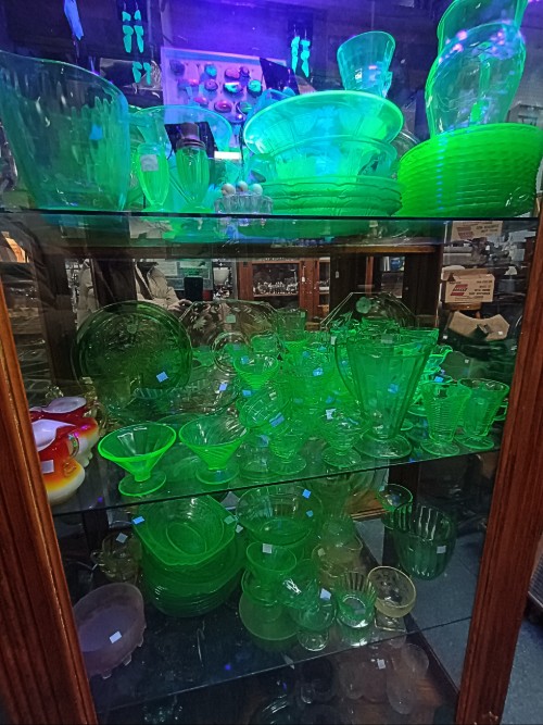 Don’t know what uranium glass is, or worried about the radioactivity? Check out this great video. (spoiler alert: it really is safe to display and has been used now and then for food or drink)