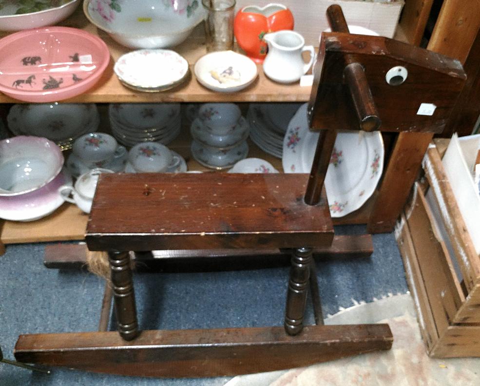 Betty (one of our steady ‘volunteers’) wanted a bit of ‘pink’ near the counter. The above pink depression glass is much more beautiful when you stop by the shop to see it. We also had a great suggestion from one of our ‘regulars’ – the pink depression glass is stunning on a navy blue tablecloth!