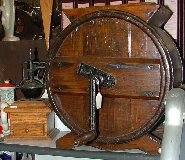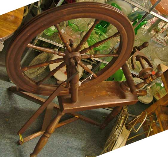 The variety of implements and tools are wide and varied in our antique mall. The above slides include a spinning wheel, butter churn from the early 1800s, coffee grinder, kerosene heater, minnow basket, a wheel from an assembly line belt from FW Smith & Son (out of Belcamp), a 150-year-old cask that sits on a table and in the photo is sitting on a table that would have held large barrels (from Europe and over 200 years old).
