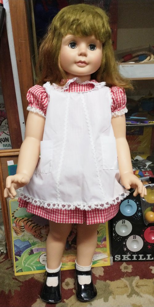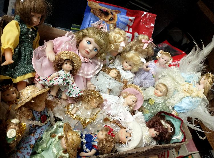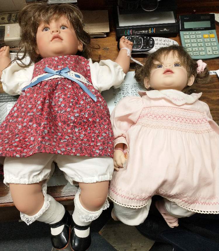 Some of the dolls have been put out on the floor. There are beautiful collectible dolls and dolls priced for kids to play with. And there are many more to come – hundreds!