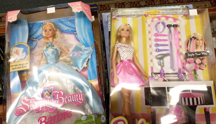 So stopping by Bahoukas might just be worth your while. The dolls in the window are beautiful. The hundreds in our store – well, come see them. Check out the braid on this Barbie! WOW!