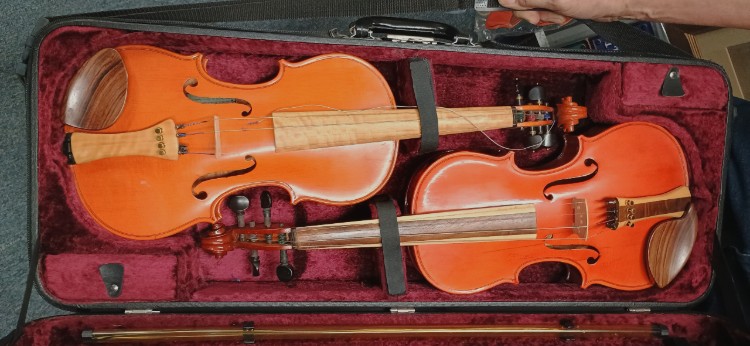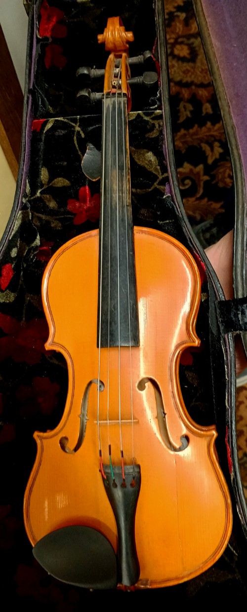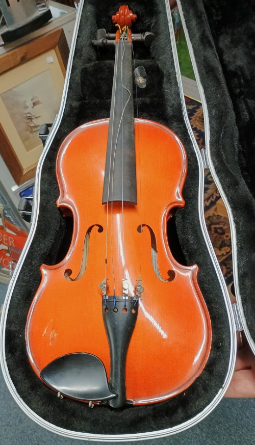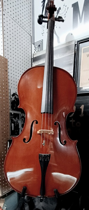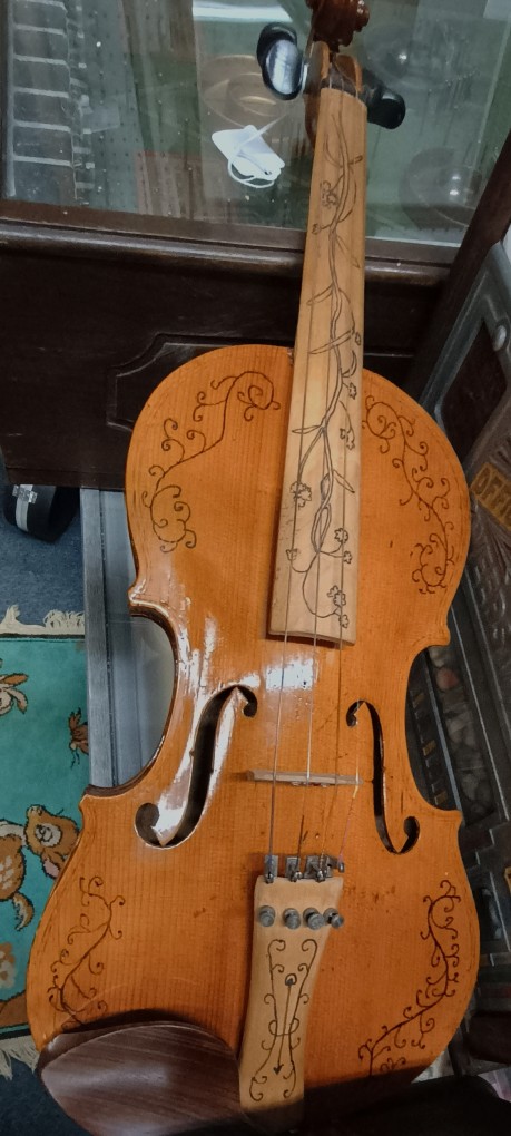 Musical instruments tend to go quickly. We recently received a collection of violins for our store. Check out this gallery that also includes a cello, an autographed violin, an acoustic starter-guitar, and a moon lute (or moon guitar).
